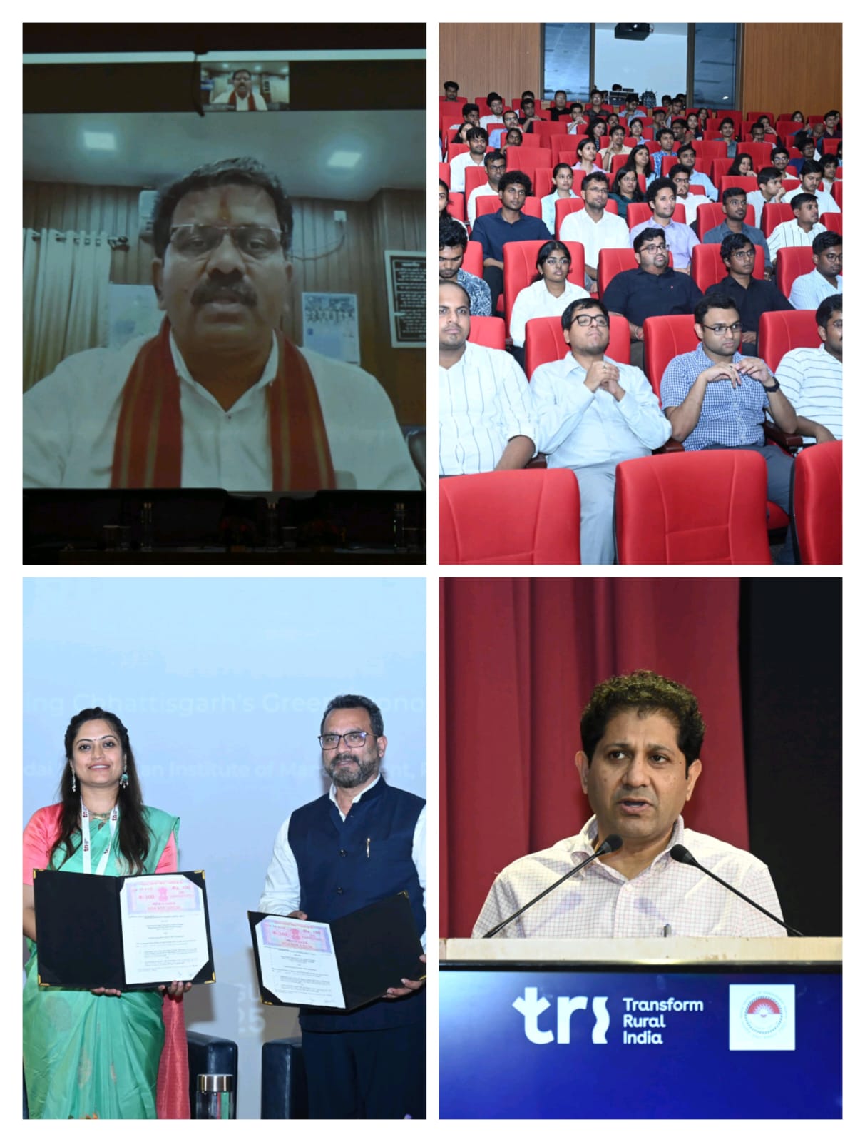 रायपुर / छत्तीसगढ़ में हरित विकास को जनभागीदारी से साकार करने की दिशा में एक उल्लेखनीय पहल करते हुए आज भारतीय प्रबंधन संस्थान रायपुर तथा ट्रांसफॉर्म रूरल इंडिया संस्था के संयुक्त आयोजन में पाँचवाँ भारत ग्रामीण संवाद–2025 सफलतापूर्वक सम्पन्न हुआ। गाँवों के नेतृत्व में छत्तीसगढ़ की हरित आर्थिक बदलाव की यात्रा विषय जिसमें प्रदेश को हरित दिशा में आगे ले जाने की रणनीति पर गहन विचार-विमर्श हुआ।
