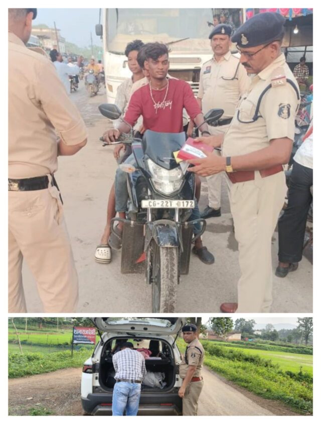 सौरभ बरवाड़/भाटापारा– पुलिस अधीक्षक भावना गुप्ता के कुशल निर्देशन में जिला बलौदाबाजार-भाटापारा पुलिस द्वारा दिनांक 05.08.2025 को सायं 05:00 से रात्रि 07:00 तक जिले के 22 महत्वपूर्ण स्थानों में नाकाबंदी कर सघन चेकिंग अभियान चलाया गया।* नाकाबंदी के दौरान शराब पीकर वाहन चलाने वाले लोगों, अवैध रूप से शराब एवं मादक पदार्थों की तस्करी करने वाले लोगों एवं अवैध वस्तुओं की तस्करी करने वाले लोगों एवं यातायात नियमों की अवहेलना करने वाले लोगों की धरपकड़ हेतु चेकिंग की गई। इस दौरान जिले के गार्डन चौक बलौदाबाजार, सांई मंदिर चौक पलारी, भालूकोना मोड लवन, अस्पताल चौक भाटापारा, पटपर भाटापारा, तिल्दा अंडरब्रिज चौक सिमगा, ग्राम सुहेला तिगड्डा, हथबंद तिगड्डा, हडहापारा चौक कसडोल, बस स्टैंड गिधौरी, वीर नारायणपुर मोड चौक (भुसड़ीपाली चौक) सोनाखान एवं ग्राम बया सहित विभिन्न स्थानों में नाकाबंदी पॉइंट लगाया गया।