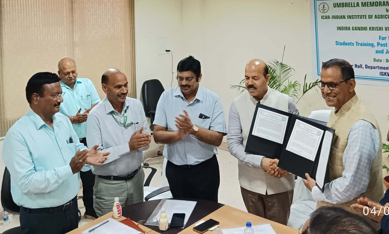 रायपुर / इदिरा गांधी कृषि विश्वविद्यालय रायपुर तथा भारतीय कृषि जैव प्रौद्योगिकी संस्थान (आईसीएआर) रांची अब जैव प्रौद्योगिकी के क्षेत्र में अनुसंधान एवं फसल सुधार हेतु मिलकर कार्य करेंगे। इस संबंध में आज यहां कृषि विश्वविद्यालय एवं भारतीय कृषि जैव प्रौद्योगिकी संस्थान रांची के मध्य एक समझौता ज्ञापन पर हस्ताक्षर किये गए। यह एमओयू मेटाबोलोमिक्स, जिनोमिक्स, जिनोम एडिटिंग और सूक्ष्मजीव अनुवांशिकी के क्षेत्र में विद्यार्थियों एवं संकाय सदस्यों के आदान-प्रदान, प्रशिक्षण तथा अनुसंधान परियोजनाओं में साझेदारी हेतु किया गया है। इस समझौते के तहत दोनो संस्थानों के विद्यार्थी, वैज्ञानिक तथा प्राध्यापक एक दूसरे के संस्थानों में जा कर अनुसंधान एवं शैक्षिक गतिविधियों में साझेदारी करेंगे। यह अनुबंध समारोह इदिरा गांधी कृषि विश्वविद्यालय रायपुर के कुलपति डॉ. गिरीश चंदेल तथा भारतीय कृषि जैव प्रौद्योगिकी संस्थान (आईसीएआर) रांची के निदेशक डॉ. सुजय रक्षित की उपस्थिति में सम्पन्न हुआ।