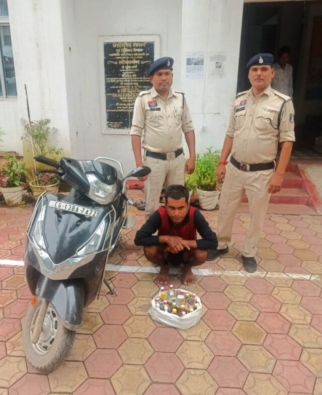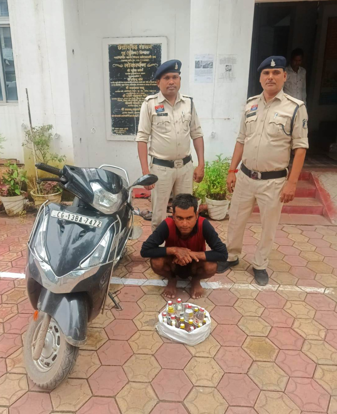 रायगढ़ । शुष्क दिवस के मद्देनजर अवैध शराब के भंडारण व बिक्री पर रोक लगाने पुलिस अधीक्षक श्री दिव्यांग पटेल द्वारा सभी थाना व चौकी प्रभारियों को सख्त निर्देश दिए गए थे। इन्हीं निर्देशों के तहत नगर पुलिस अधीक्षक श्री मयंक मिश्रा के मार्गदर्शन और थाना प्रभारी कोतवाली निरीक्षक सुखनंदन पटेल के नेतृत्व में 13 अगस्त को कोतवाली पुलिस ने कार्रवाई करते हुए अवैध शराब की बड़ी खेप जब्त की। पुलिस को सूचना मिली थी कि कोतरारोड़ की ओर से एक काले रंग की हीरो मोटरसाइकिल (क्रमांक CG 13 BA 7472) में एक व्यक्ति डिक्की में अधिक मात्रा में शराब रखकर पुरानी बस्ती ढिमरापुर की ओर जा रहा है। थाना प्रभारी के निर्देशन पर उप निरीक्षक ऐनु देवांगन के हमराह पुलिस टीम ने ढिमरापुर चौक, ईलामॉल के पास घेराबंदी कर संदिग्ध वाहन को रोक लिया। तलाशी में प्लास्टिक बोरी के अंदर 12 पाव देशी मदिरा मसाला और 20 पाव देशी मदिरा प्लेन, कुल 32 पाव शराब कीमत 2800 रुपये और 60 हजार रुपये मूल्य की मोटरसाइकिल बरामद की गई। गिरफ्तार आरोपी की पहचान सचिन कुमार पिता शशीनाथ पाण्डेय (34 वर्ष), निवासी ग्राम गायघाट, थाना ब्रम्हपुर, जिला बक्सर (बिहार) के रूप में हुई, जो वर्तमान में पुरानी बस्ती ढिमरापुर रायगढ़ में रह रहा था। आरोपी के खिलाफ थाना कोतवाली में धारा 34(2), 59(क) आबकारी एक्ट के तहत अपराध दर्ज कर कार्रवाई की गई। इस सफल कार्यवाही में निरीक्षक सुखनंदन पटेल, उप निरीक्षक ऐनु देवांगन, आरक्षक कमलेश यादव और रोशन एक्का की महत्वपूर्ण भूमिका रही।