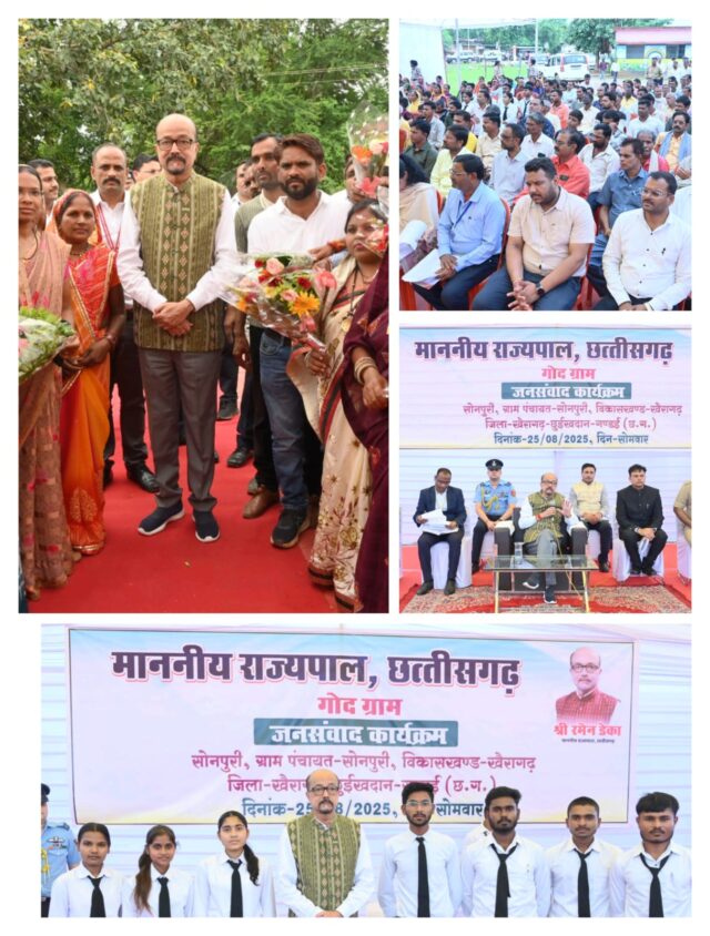 रायपुर / राज्यपाल रमेन डेका ने अपने खैरागढ़ प्रवास के दौरान अपने गोद लिए हुए ग्राम सोनपूरी का भ्रमण किया और जनसंवाद कार्यक्रम में शामिल होकर ग्रामीणों से सीधा संवाद किया। उन्होंने कहा कि शासन की योजनाओं का वास्तविक उद्देश्य तभी पूरा होगा जब इनका लाभ अंतिम पंक्ति के हितग्राही तक पहुंचे। ग्राम सोनपूरी को मॉडल ग्राम के रूप में विकसित करने के लिए उन्होंने सभी विभागों को समन्वित प्रयास करने के निर्देश दिए।