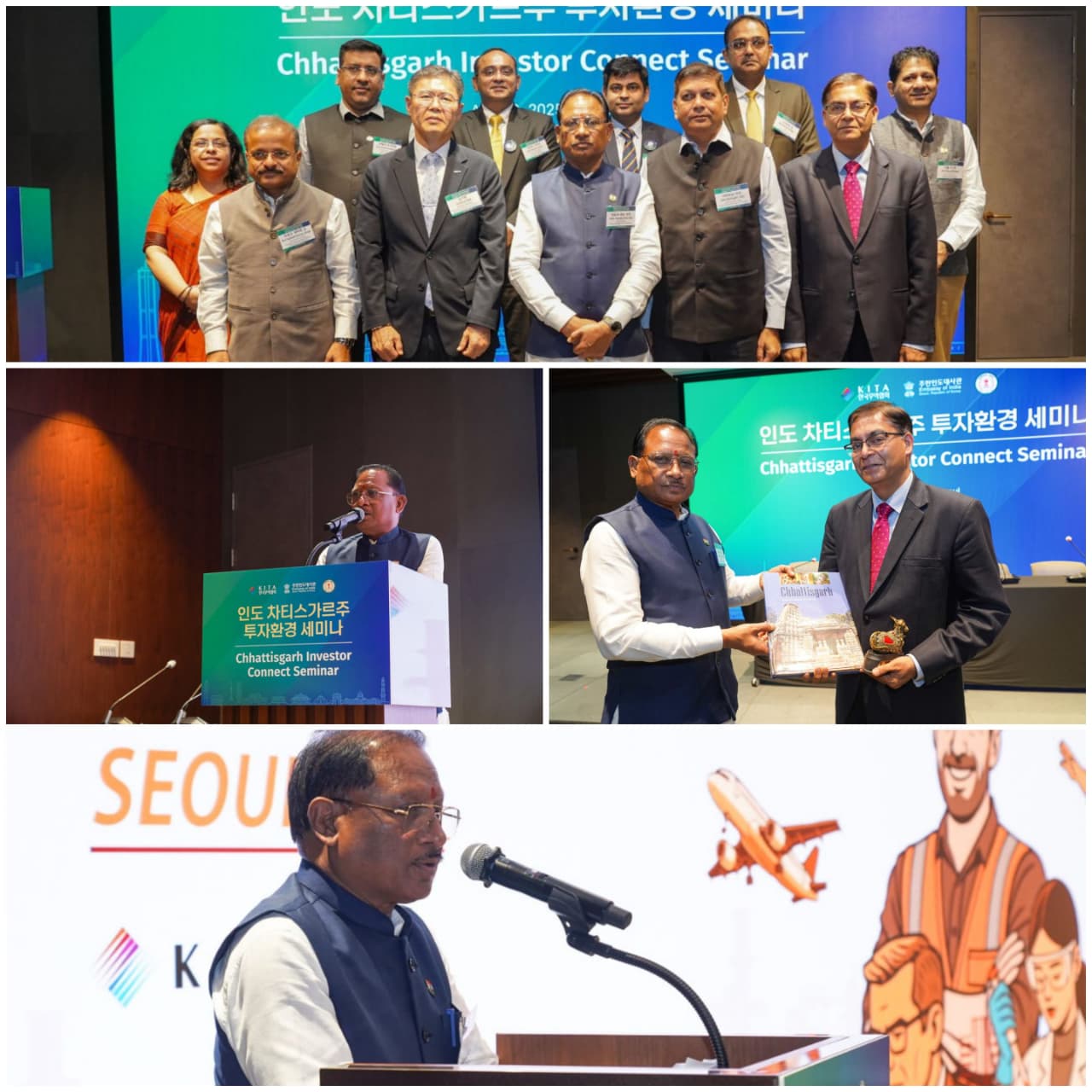 रायपुर, मुख्यमंत्री श्री विष्णुदेव साय ने आज दक्षिण कोरिया की राजधानी सियोल में आयोजित छत्तीसगढ़ इन्वेस्टर कनेक्ट कार्यक्रम में कोरिया इंटरनेशनल ट्रेड एसोसिएशन और निवेशकों के समक्ष छत्तीसगढ़ में निवेश की संभावनाओं की विस्तार से जानकारी देते हुए कहा कि छत्तीसगढ़ अपनी प्रो-एक्टिव एवं विकासोन्मुख औद्योगिक नीति 2024–30, प्रचुर प्राकृतिक संसाधनों और प्रशिक्षित जनशक्ति के बल पर वैश्विक निवेश और औद्योगिक सहयोग के लिए पूरी तरह तैयार है।