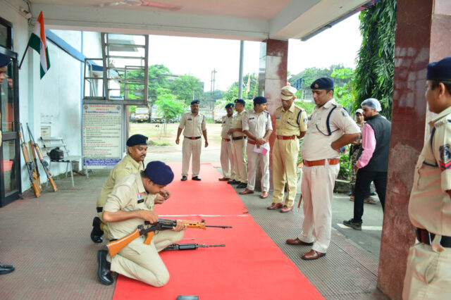 थाना प्रभारी निरीक्षक राकेश मिश्रा के नेतृत्व में सशस्त्र जवानों ने पुलिस अधीक्षक को सलामी दी। गणवेश में उत्कृष्टता दिखाने वाले जवानों को मौके पर ही प्रोत्साहन स्वरूप ईनाम प्रदान किया गया। जवानों ने ड्रील अभ्यास और रायफल एक्सरसाइज का प्रदर्शन भी किया।