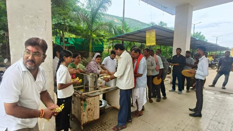 दशहरा पर्व के अवसर पर पूर्वांचल भोजपुरी समाज रायगढ़ द्वारा संचालित मां अन्नपूर्णा रसोई के माध्यम से सेवा और सहयोग का अद्भुत उदाहरण प्रस्तुत किया गया। इस अवसर पर समाज के संरक्षक शिव लोचन यादव के नेतृत्व में मातृ शिशु अस्पताल रायगढ़ में भर्ती मरीजों के परिजनों को निःशुल्क भोजन वितरण किया गया।