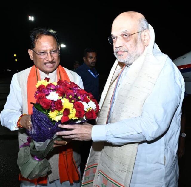 रायपुर \ केंद्रीय गृह मंत्री श्री अमित शाह आज छत्तीसगढ़ के दो दिवसीय प्रवास पर राजधानी रायपुर पहुंचे। मुख्यमंत्री श्री विष्णु देव साय ने स्वामी विवेकानंद विमानतल पर पुष्पगुच्छ भेंट कर उनका आत्मीय स्वागत किया।