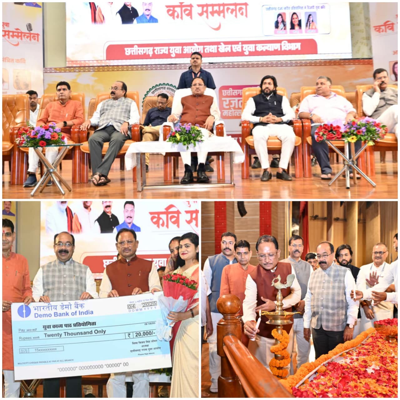 राज्य स्तरीय युवा कवि प्रतियोगिता में बिलासपुर जिले की निधि तिवारी ने प्रथम स्थान, मीरा मृदु ने द्वितीय स्थान तथा कोरिया जिले की अलीशा शेख ने तृतीय स्थान प्राप्त किया। मुख्यमंत्री श्री साय ने सभी विजेता प्रतिभागियों को सम्मानित किया और उनके उज्ज्वल भविष्य की कामना की।