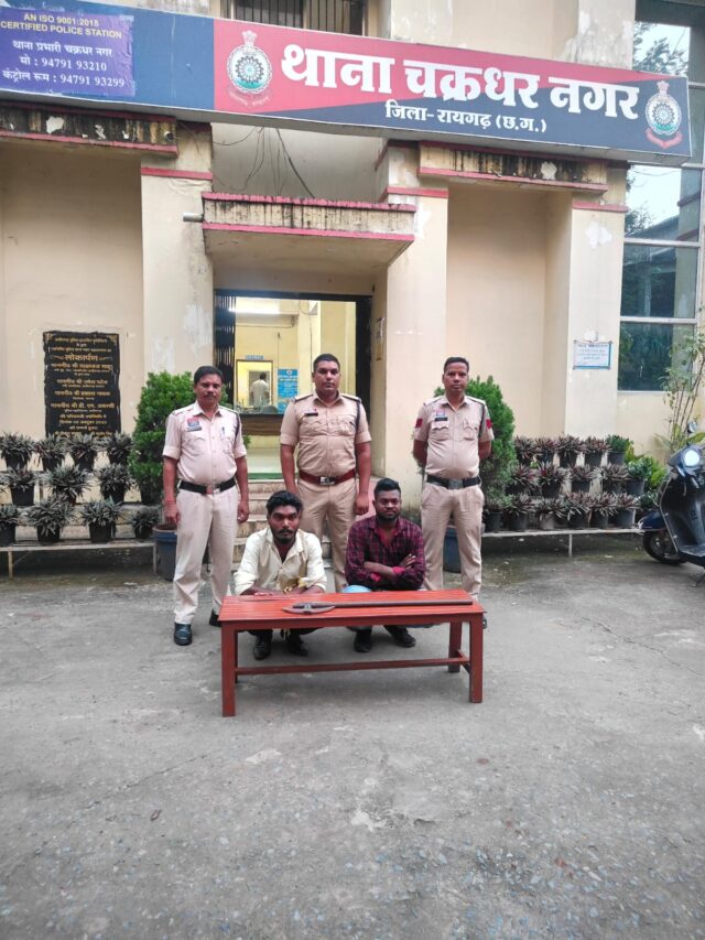 रायगढ़, चक्रधरनगर पुलिस ने 7 अक्टूबर मंगलवार शाम मानकेश्वरी मंदिर के मेला स्थल (जामगांव) में धारदार हथियार लेकर घूम रहे दो युवकों को पकड़कर जेल भेज दिया है। दोनों आरोपी फरसा लहराते हुए लोगों को भयभीत कर रहे थे, जिन पर पुलिस ने आर्म्स एक्ट की सख्त धाराओं में मामला दर्ज किया है।