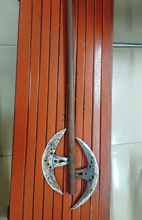 Two youths were arrested for brandishing axes at the Mankeshwari Temple fair; police took action under the Arms Act and sent them to jail.