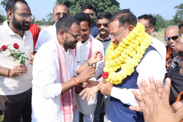 Chief Minister Vishnudev Sai reached Sirkinara School Ground helipad in Lalunga and was given a warm welcome.