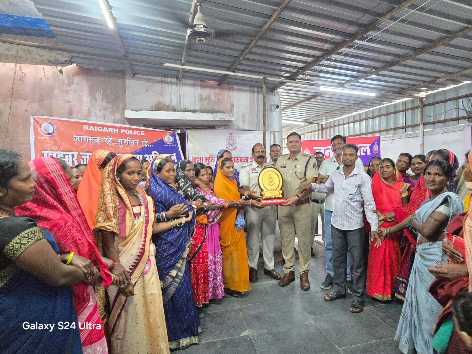 रायगढ़, पुलिस अधीक्षक श्री दिव्यांग पटेल के दिशा-निर्देशन में अवैध शराब पर रोकथाम की मुहिम अब जनआंदोलन का रूप लेने लगी है। थाना जूटमिल क्षेत्र के ग्राम पंचायत दर्रामुड़ा का गांव गुडगहन डिपापारा ने अपने सामूहिक प्रयास और महिला शक्ति की अगुवाई में नशा मुक्त गांव बनकर एक मिसाल कायम की है। इस सराहनीय पहल के लिए थाना जूटमिल में आयोजित विशेष कार्यक्रम में थाना प्रभारी ने महिला समूह की सदस्यों और ग्राम सरपंच क्षितेश्वर गुप्ता को पुलिस द्वारा सम्मानित किया गया।