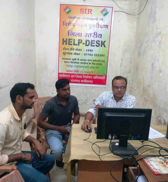 रायगढ़, भारत निर्वाचन आयोग, नई दिल्ली के निर्देशानुसार रायगढ़ जिले में 4 नवम्बर 2025 से विशेष गहन पुनरीक्षण अभियान प्रारंभ हो गया है। इस अभियान के तहत विधानसभा निर्वाचन क्षेत्रों की मतदाता सूचियों का सत्यापन और अद्यतन कार्य किया जा रहा है, जिसकी अर्हता तिथि 01 जनवरी 2026 निर्धारित की गई है। कलेक्टर एवं जिला निर्वाचन अधिकारी श्री मयंक चतुर्वेदी के निर्देशन में जिले के सभी बूथ लेवल अधिकारी अपने-अपने मतदान केंद्रों के अंतर्गत आने वाले सभी मतदाताओं के घर-घर जाकर गणना पत्रक भरने में मदद कर रहे हैं। यह अभियान 4 दिसम्बर 2025 तक चलेगा।