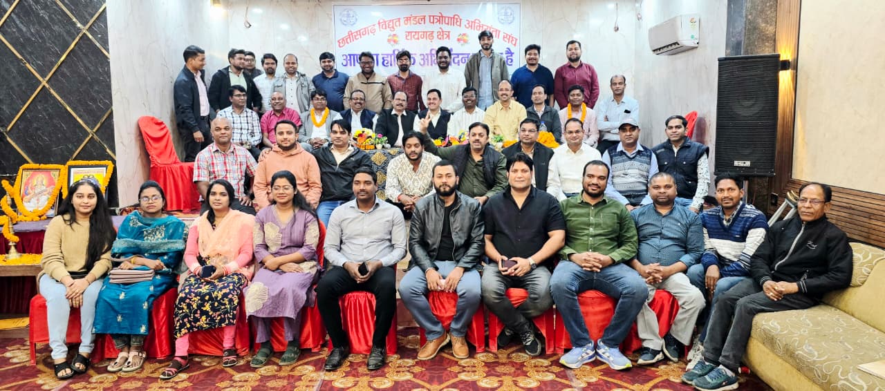 रायगढ़। 14 दिसंबर को छत्तीसगढ़ स्टेट पॉवर डिस्ट्रीब्यूशन कंपनी रायगढ़ क्षेत्र द्वारा बिजली विभाग के अधिकारियों का क्षेत्रीय कार्यकारिणी का चुनाव होटल श्री साईं श्रद्धा में सफलता पूर्वक संपन्न कराया गया। इस चुनाव में प्रांतीय अध्यक्ष अभियंता श्रीकांत बडगैय्या मुख्य अतिथि के रूप में शामिल हुए तथा कार्यक्रम की अध्यक्षता प्रांतीय सचिव अभियंता दीपक निकुंज ने किया चुनाव अधिकारी तथा सहायक चुनाव अधिकारी की भूमिका क्रमशः अभियंता प्रांतीय उपाध्यक्ष अविनाश दुबे तथा अभियंता संगठन सचिव राजेंद्र गिरी गोस्वामी ने निभाई । बिजली विभाग रायगढ़ रीजन अंतर्गत रायगढ़, सारंगढ़ और जांजगीर चांपा जिले के लगभग 50 से अधिक सहायक अभियंता तथा कनिष्ठ अभियंता इस कार्यक्रम में शामिल हुए।
