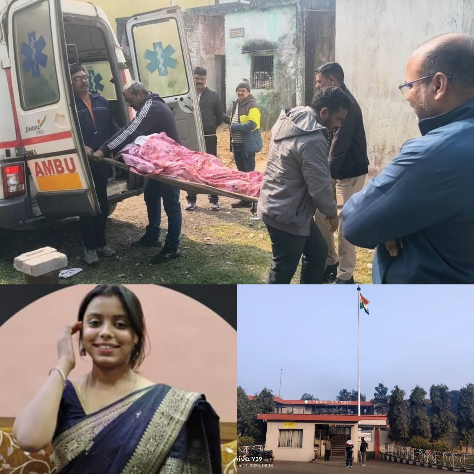 बताया जा रहा है कि जिंदल यूनिवर्सिटी में पढ़ने वाली बीएससी सेकण्ड ईयर की छात्रा हॉस्टल के कमरे में फांसी के फंदे पर झूलती हुई मिली। जिसकी सूचना jit कालेज प्रबंधन ने अविलंब पूंजीपथरा पुलिस को दी। पुलिस ने बिना समय गवाए घटना की जांच शुरू की। प्रारंभिक जांच में मृतिका की पहचान प्रिंसी कुमारी उम्र 20 वर्ष के रूप में हुई है,जिसके पिता राजीव सिंह है। मृतीका मूलतः जमशेदपुर टाटा की रहने वाली थी।