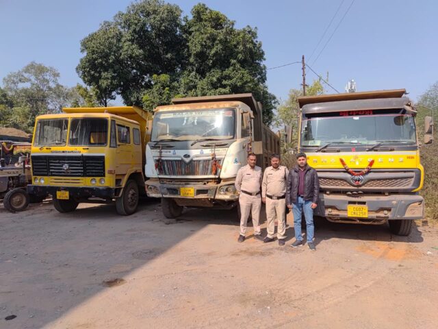 जांच के दौरान मुरूम के अवैध परिवहन में संलिप्त दो हाईवा वाहनों को मौके पर जब्त किया गया, वहीं एक अन्य हाईवा वाहन को अवैध रूप से रेत का परिवहन करते हुए पकड़ा गया। जब्त किए गए सभी वाहनों के संबंध में संबंधित व्यक्तियों के विरुद्ध नियमानुसार कार्रवाई की जा रही है।
