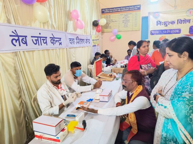 रायगढ़, / राष्ट्रीय शहरी स्वास्थ्य मिशन, जिला रायगढ़ के अंतर्गत आज चौहान समाज भवन, देवारपारा रायगढ़ में निःशुल्क आउटरीच विशेष स्वास्थ्य शिविर का आयोजन किया गया। इस अवसर पर महापौर श्री जीवर्धन चौहान ने शिविर स्थल का निरीक्षण किया और विभिन्न जांच काउंटरों का अवलोकन कर हितग्राहियों से चर्चा की। उन्होंने स्वयं भी स्वास्थ्य जांच करवाई और स्वास्थ्य सेवाओं की गुणवत्ता का प्रत्यक्ष अनुभव लिया। महापौर ने कहा कि ऐसे शिविर शहरी नागरिकों को समय पर निःशुल्क एवं गुणवत्तापूर्ण स्वास्थ्य सेवाएं उपलब्ध कराने में महत्वपूर्ण भूमिका निभाते हैं।