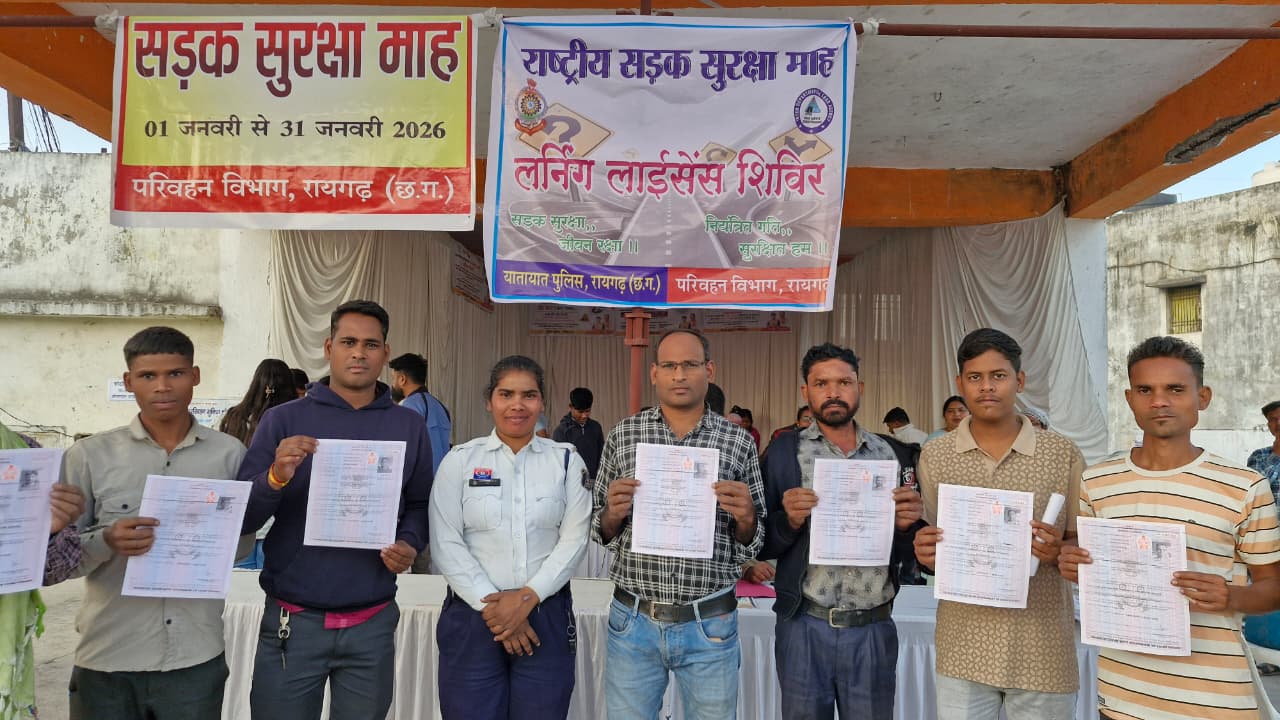 रायगढ़, । राष्ट्रीय सड़क सुरक्षा माह 2026 के अंतर्गत सड़क सुरक्षा एवं यातायात नियमों के प्रति जागरूकता बढ़ाने के उद्देश्य से दिनांक 13 जनवरी 2026 को रायगढ़ में लर्निंग लाइसेंस शिविर का सफल आयोजन किया गया।