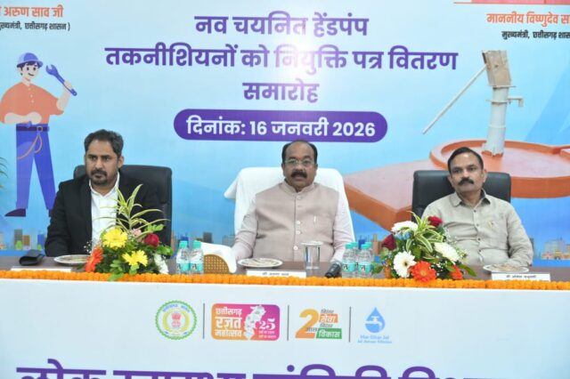 रायपुर / उप मुख्यमंत्री एवं लोक स्वास्थ्य यांत्रिकी मंत्री श्री अरुण साव ने आज व्यावसायिक परीक्षा मंडल (व्यापमं) द्वारा प्रतियोगी परीक्षा के माध्यम से चयनित 44 नए हैंडपंप तकनीशियनों को नियुक्ति पत्र प्रदान किया। श्री साव ने नवनियुक्त तकनीशियनों को बधाई देते हुए उनके उज्ज्वल भविष्य की कामना की। श्री साव ने इस अवसर पर छत्तीसगढ़ में पेयजल समस्याओं के निदान के लिए नया नंबर 1916 जारी किया।