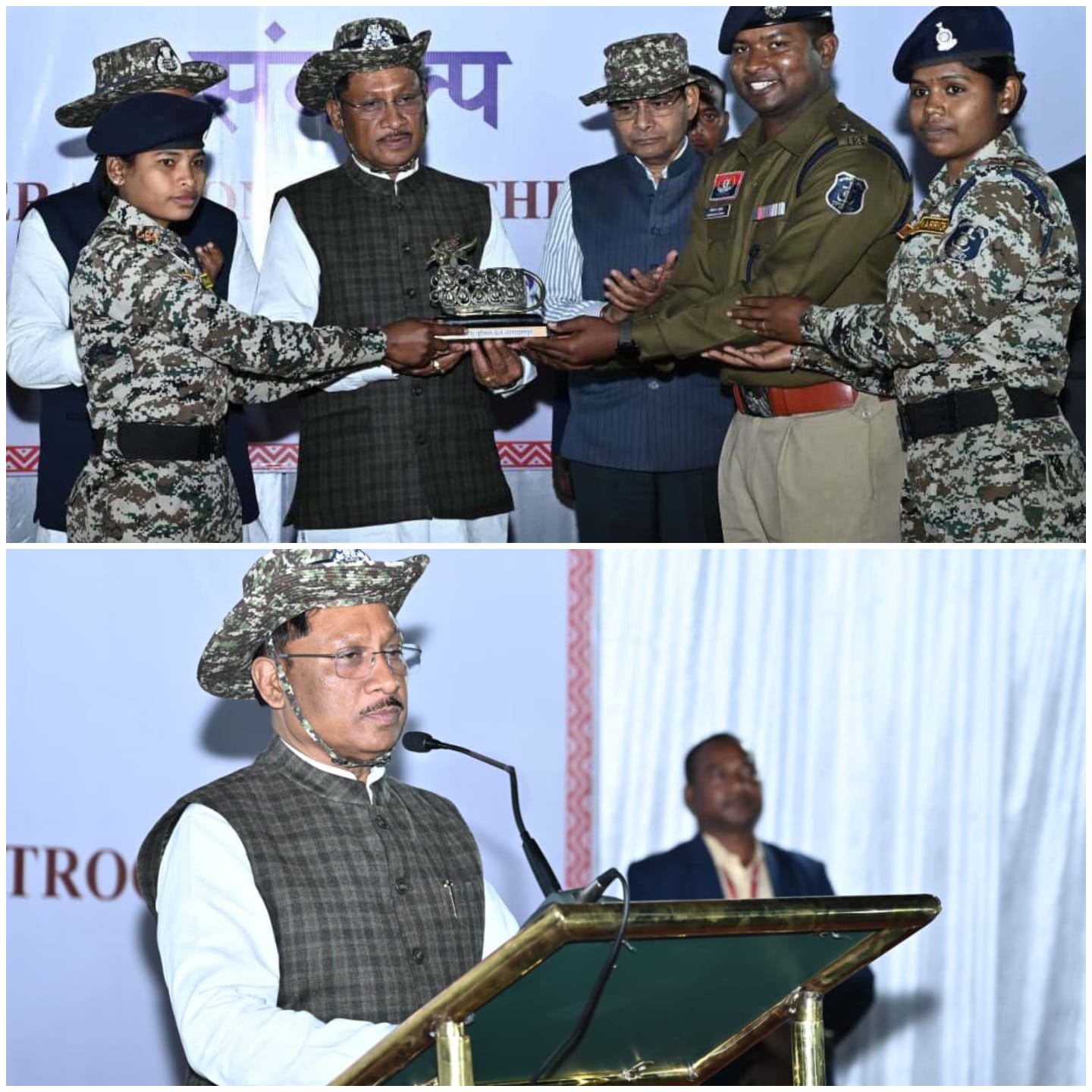 वन मंत्री श्री केदार कश्यप ने कहा कि सुरक्षा बलों के जवानों द्वारा केंद्रीय गृहमंत्री श्री अमित शाह के संकल्प को यहां साकार करने का काम पूरी दृढ़ता से किया जा रहा है। उन्होंने कहा कि अब बम गोलियों की आवाज की जगह अब आमजन की चहल-पहल, स्कूलों में ककहरा की गंूज और गांवों में मांदर की थाप सुनाई दे रही हैं। कार्यक्रम में अतिथियों ने जवानों को उपहार भेंट किए। सुरक्षा बलों के वरिष्ठ अधिकारियों ने मुख्यमंत्री और मंत्रियों को स्मृति चिह्न भेंट किए।