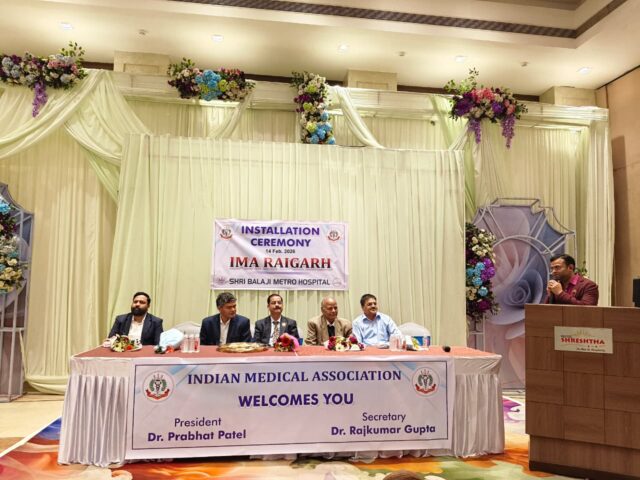 रायगढ़। Indian Medical Association (आईएमए) रायगढ़ शाखा का शपथ ग्रहण समारोह 14 फरवरी को गरिमामय वातावरण में डॉ. प्रकाश मिश्रा के मुख्य आतिथ्य में संपन्न हुआ। कार्यक्रम की शुरुआत राष्ट्रगान एवं पुलवामा शहीदों के पुण्य स्मरण के साथ की गई, जिसके पश्चात विधिवत शपथ ग्रहण की प्रक्रिया प्रारंभ हुई।