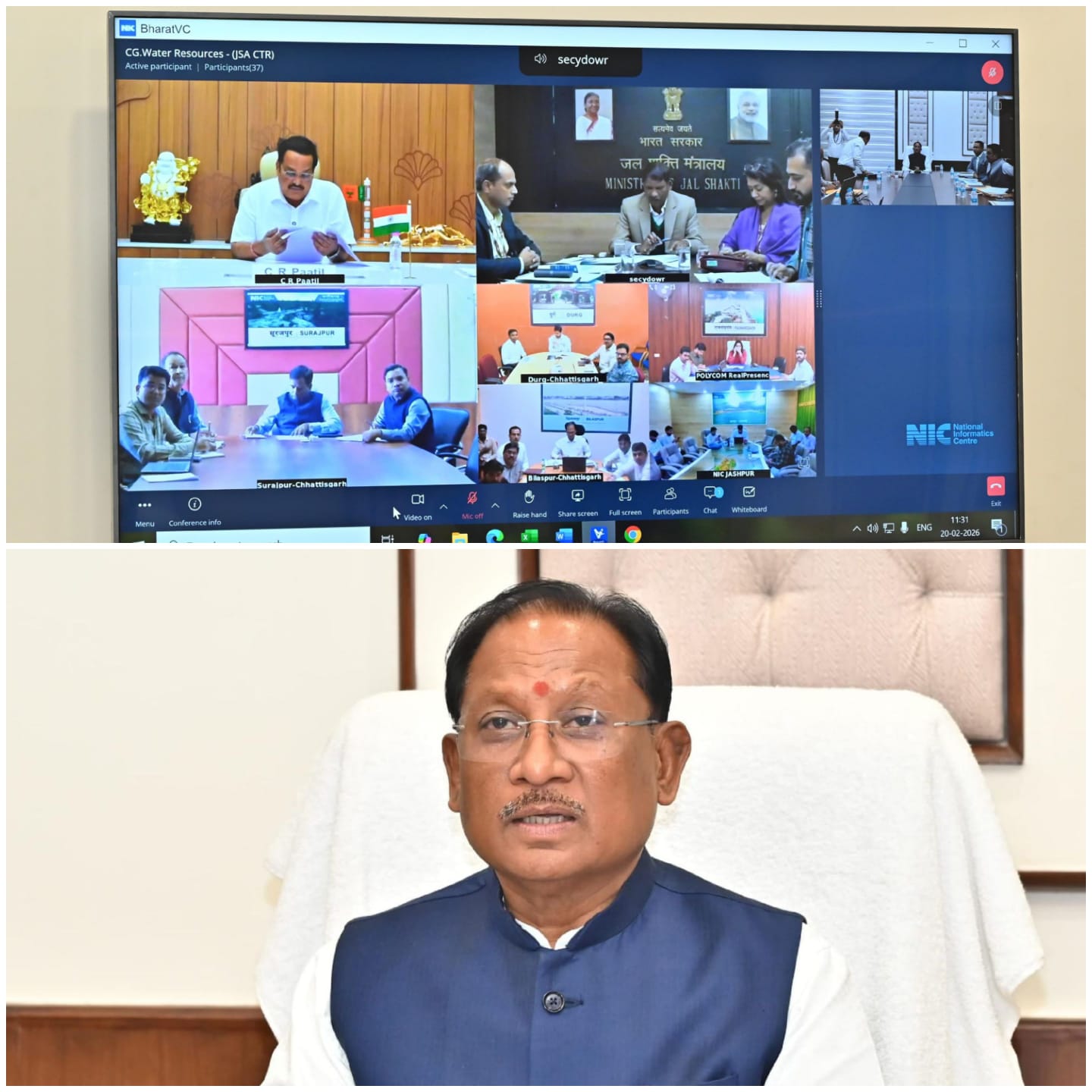 मुख्यमंत्री साय और केंद्रीय जल शक्ति मंत्री श्री सी. आर. पाटिल की संयुक्त अध्यक्षता में “जल संचय-जन भागीदारी 2.0” अभियान के क्रियान्वयन की हुई गहन समीक्षा