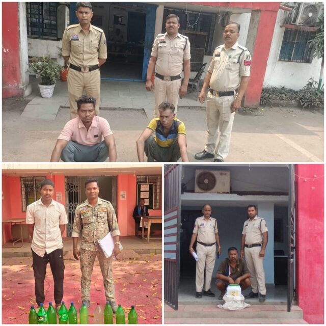 🚨 तमनार, चौकी खरसिया और भूपदेवपुर क्षेत्र में पुलिस की दबिश, 4 आरोपियों के कब्जे से अवैध महुआ शराब बरामद