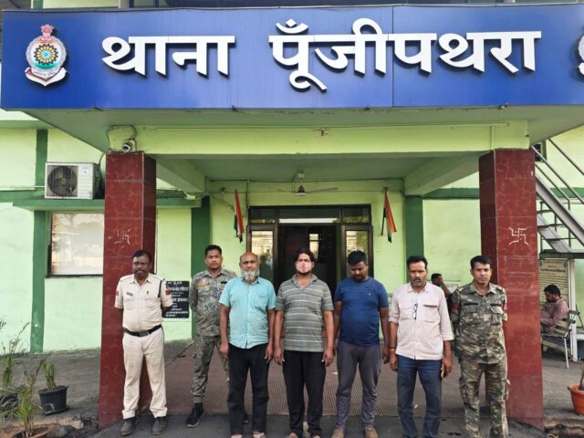 इसी क्रम में आज सुबह थाना प्रभारी पूंजीपथरा निरीक्षक रामकिंकर यादव के नेतृत्व में मुखबिर सूचना पर पुलिस टीम द्वारा तमनार चौक तथा महुआ चौक तुमीडीह में घेराबंदी कर उड़ीसा की ओर से रायगढ़ की तरफ आ रहे चार भारी वाहनों को रोका गया। जांच के दौरान तीन 12 चक्का ट्रकों में आयरन पेललेट्स तथा एक 12 चक्का ट्रक में लगभग 25 टन स्क्रैप लोहे के छड़, मशीनरी पार्ट्स आदि लोड पाया गया। वाहन चालकों से स्क्रैप एवं पेललेट्स गोली के परिवहन से संबंधित वैध दस्तावेज प्रस्तुत करने को कहा गया, किंतु दस्तावेज उपलब्ध नहीं होने पर सभी वाहनों को जब्त कर चालकों के विरुद्ध धारा 35(क), (ड) बीएनएसएस / 303(2) बीएनएस के तहत वैधानिक कार्रवाई की गई।